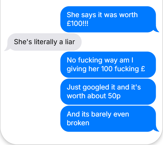 “- and she kept - she kept showing me the mirror, like I was a dog having its face shoved into its own faeces so it won’t poo in the house any more! I had to just close my eyes!”