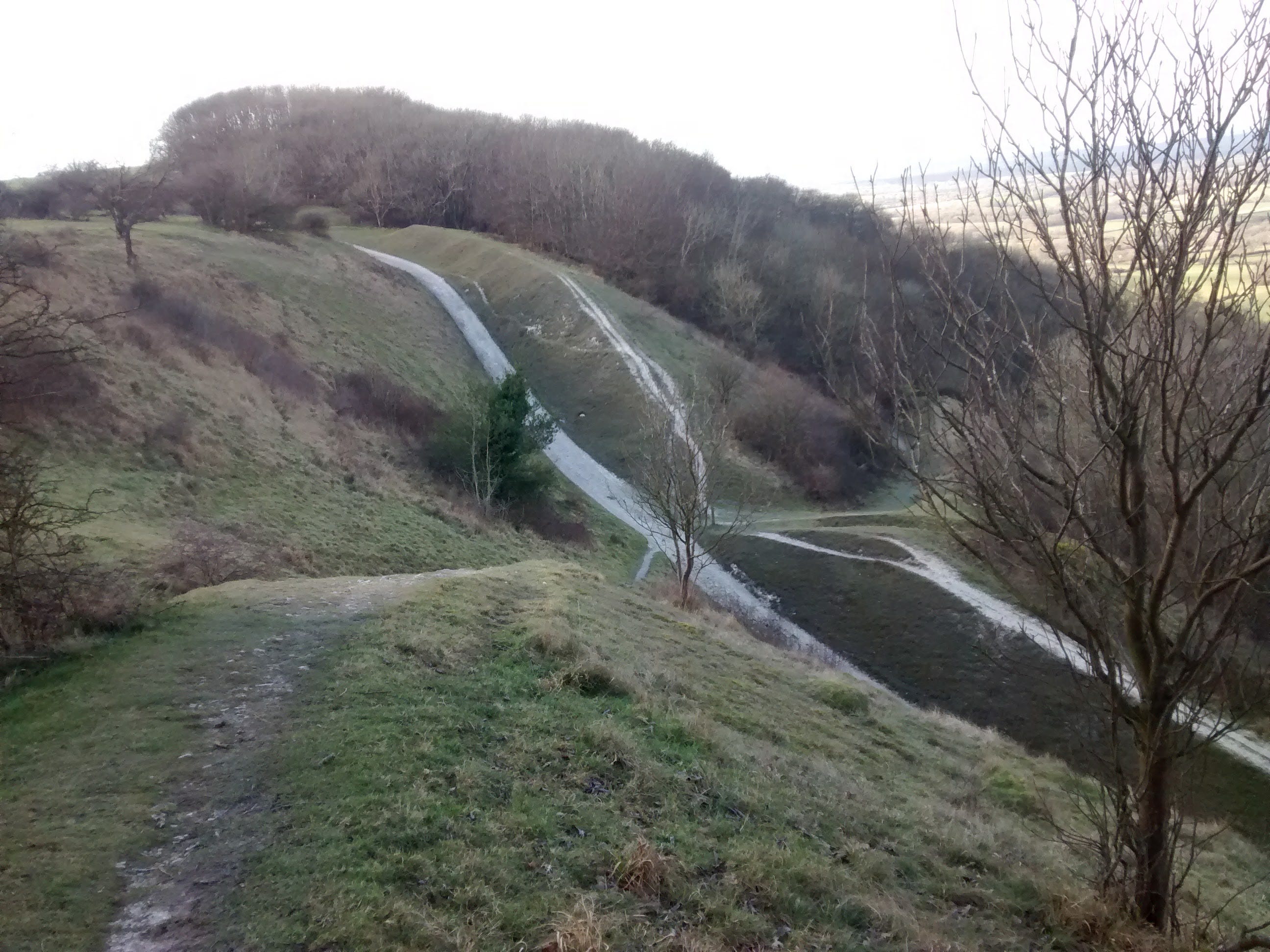 We found our way out of a wooded pit of dead branches and dry brown leaves on the ground, two seasons behind. We headed uphill. The chalk was soft underfoot, cut in white tracks across sweeping slopes, under harsh clumps of gorse with flowers that smelled of coconut. We came to the crest and more and more and more of it was laid around us, like a trick, taking us off balance, all this plentitude rolling away.