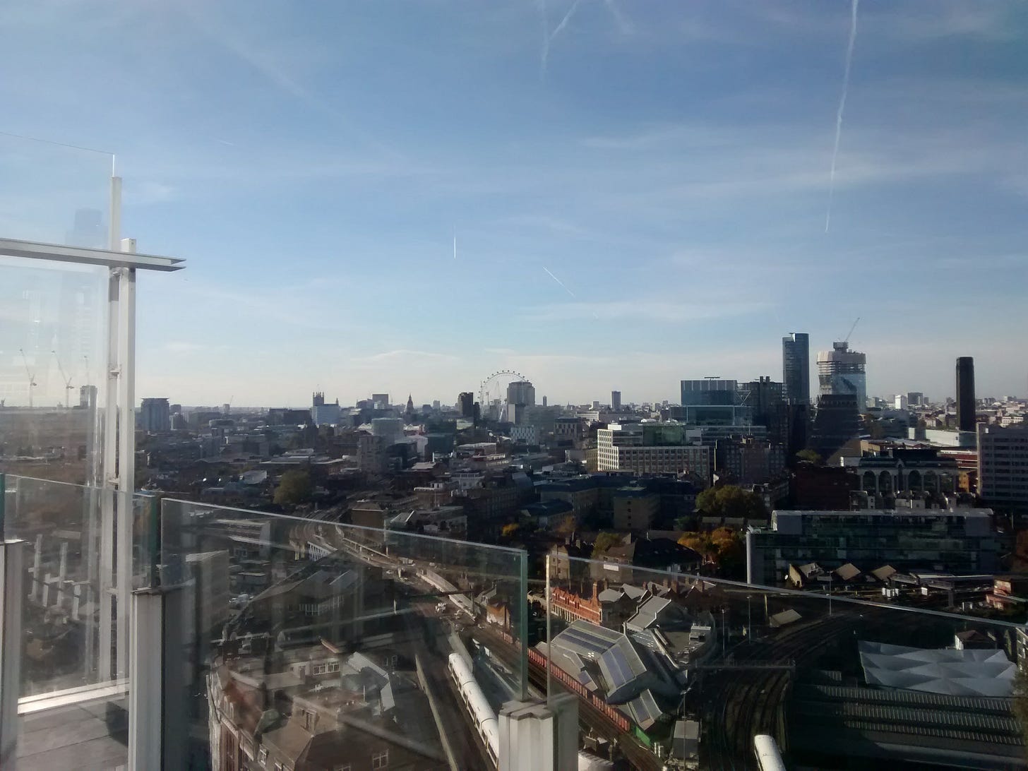 The station at Elephant and Castle has bleak views of high-rises, touched by the domestic - the tall white building with trees growing at the top. The old shopping centre with its sparse survivors - the girdle shop by the escalators, the kebab shop on the ground floor near Tesco - has been closed down.