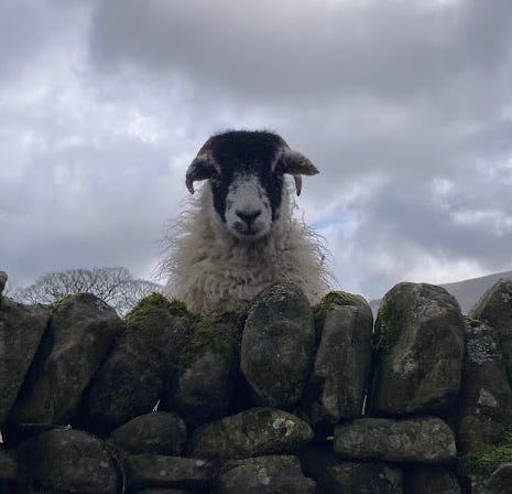 When they were out in flat farmland they could cycle next to each other. The road had no camber and petered into grass on either side. The fields were studded with sheep. Hench lambs barrelled into their mothers and plundered their teats, nearly knocking them down.